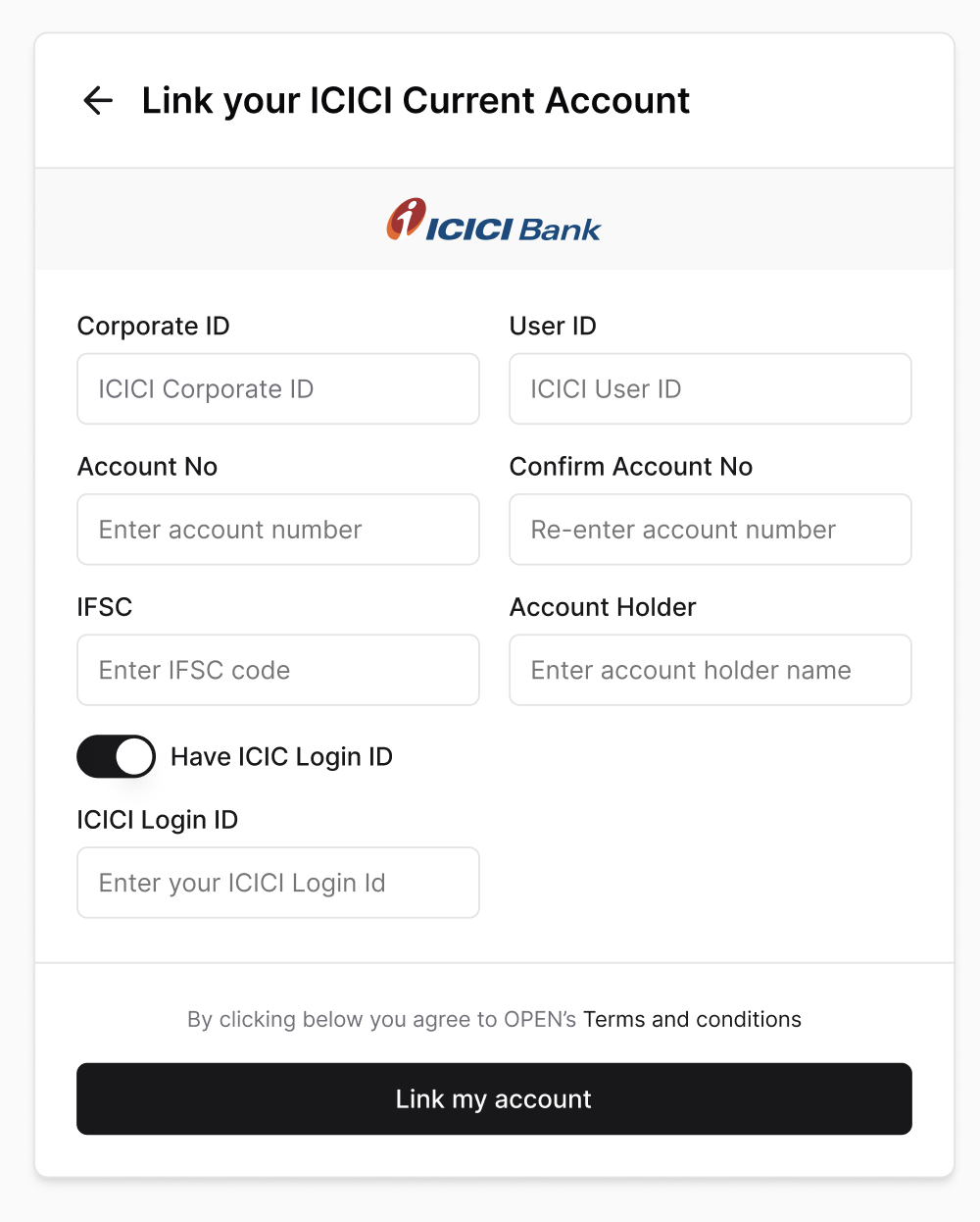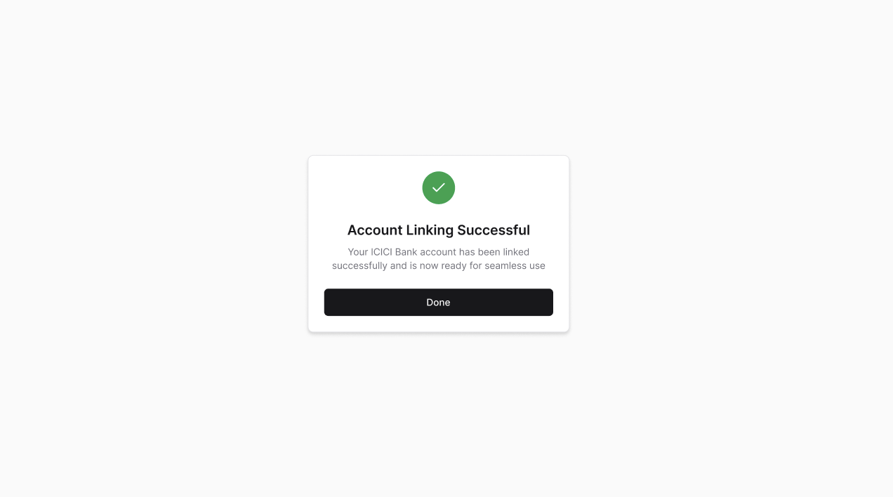 - The user completes the account linking process by entering the required details as prescribed by the selected bank.